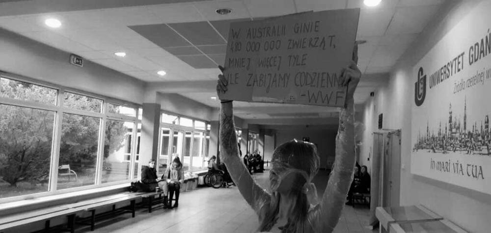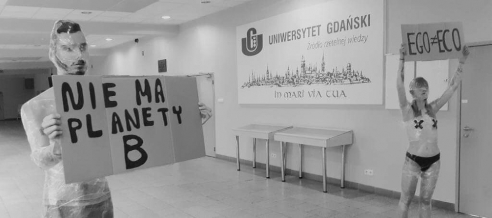 Intersujące zdarzenie artystyczne, performance klimatyczny, miał miejsce na Wydziale Filologicznym Uniwersytetu Gdańskiego w budynku Humanki. Performance przeprowadziło dwoje studentów II roku kulturoznawstwa w ramach zajęć z Projektowania sytuacji twórczych pod opieką dr Katarzyny Pastuszak. Czas i miejsce nie były przypadkowe - w momencie kiedy oczy całego świata zwrócone były na płonącą Australię - studenci chcieli, aby społeczność akademicka zwróciła uwagę na ważny dla nich przekaz. Występ wzbudził silne emocje i sprowokował odbiorców do dyskusji nad tym problemem globalnego ocieplenia klimatu. We współczesnej kulturze, w której panuje kult ciała, dwie półnagie sylwetki studentów, owinięte folią spożywczą, zostały celowo zdehumanizowane, aby swoją pozą przypominać manekiny. W czasach, kiedy wszystko jest celowo zerotyzowane, performerzy posłużyli się swoimi ciałami, aby zwrócić uwagę na rangę problemu, jakim jest zmieniający się klimat. Na pytanie: "Czy to dobre miejsce?" dla takich działań, odpowiedź studentów brzmi: -Jeśli uniwersytet, kształcący młode umysły, które są przyszłością naszej planety nim nie jest, to jakie miejsce jest odpowiednie?